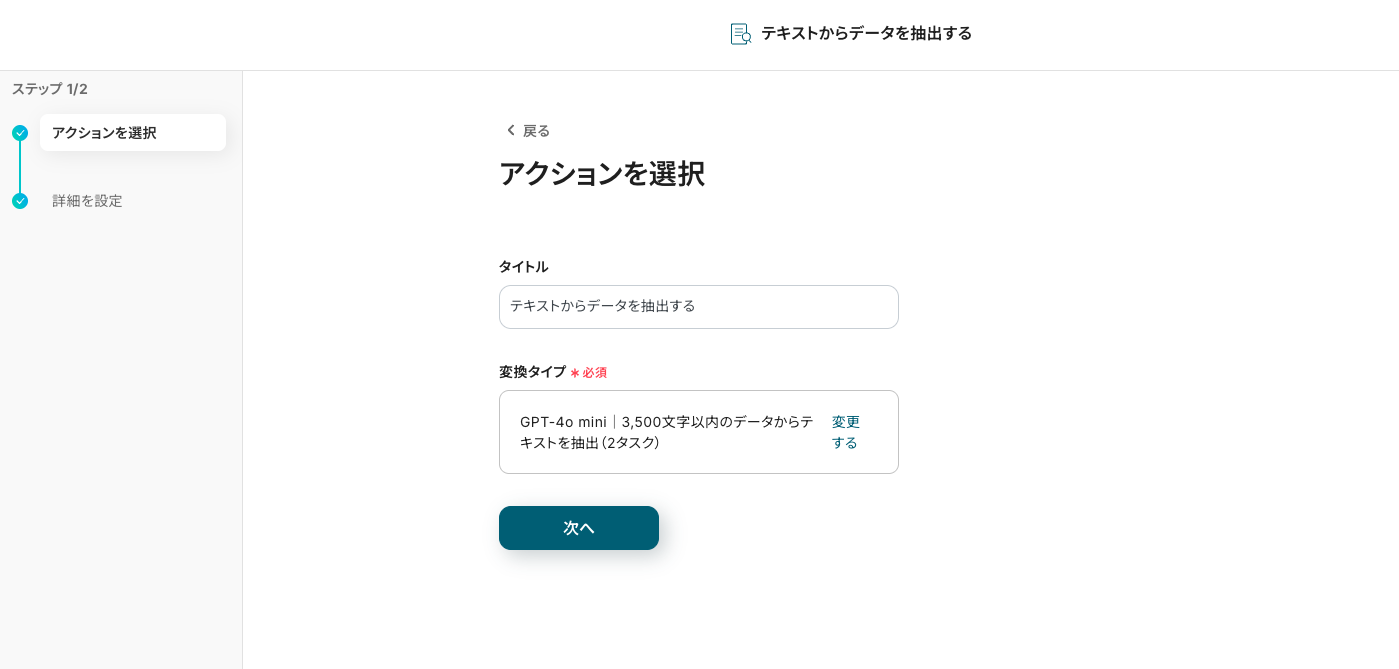 設定ができたら、次へボタンをクリックします。