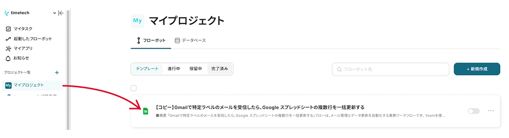 コピーしたテンプレートは、マイプロジェクトに追加されます。マイプロジェクトは左のメニューバーからアクセス可能です。