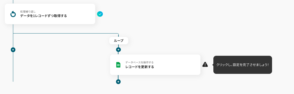 ・「同じ処理を繰り返す」オペレーション間の操作は、チームプラン・サクセスプランでのみご利用いただける機能となっております。フリープラン・ミニプランの場合は設定しているフローボットのオペレーションやデータコネクトはエラーとなりますので、ご注意ください。