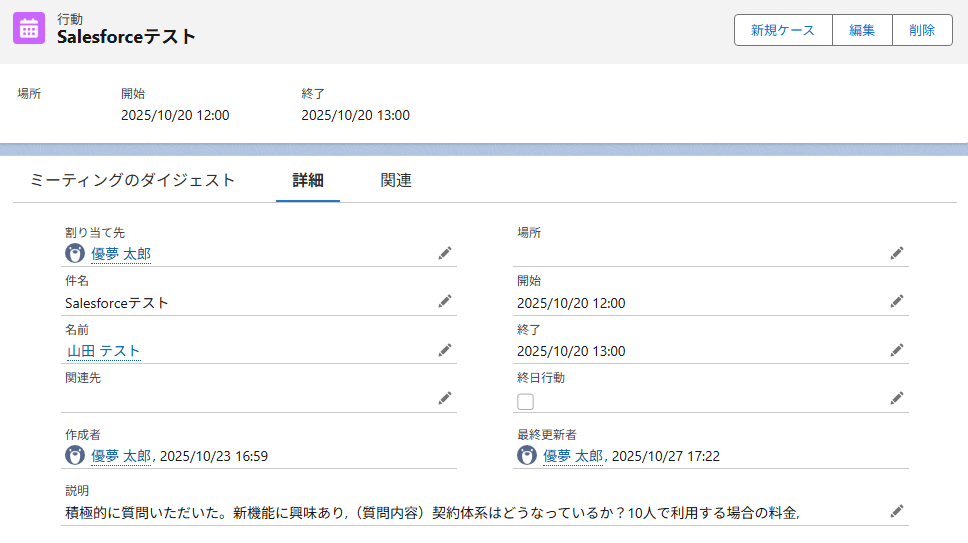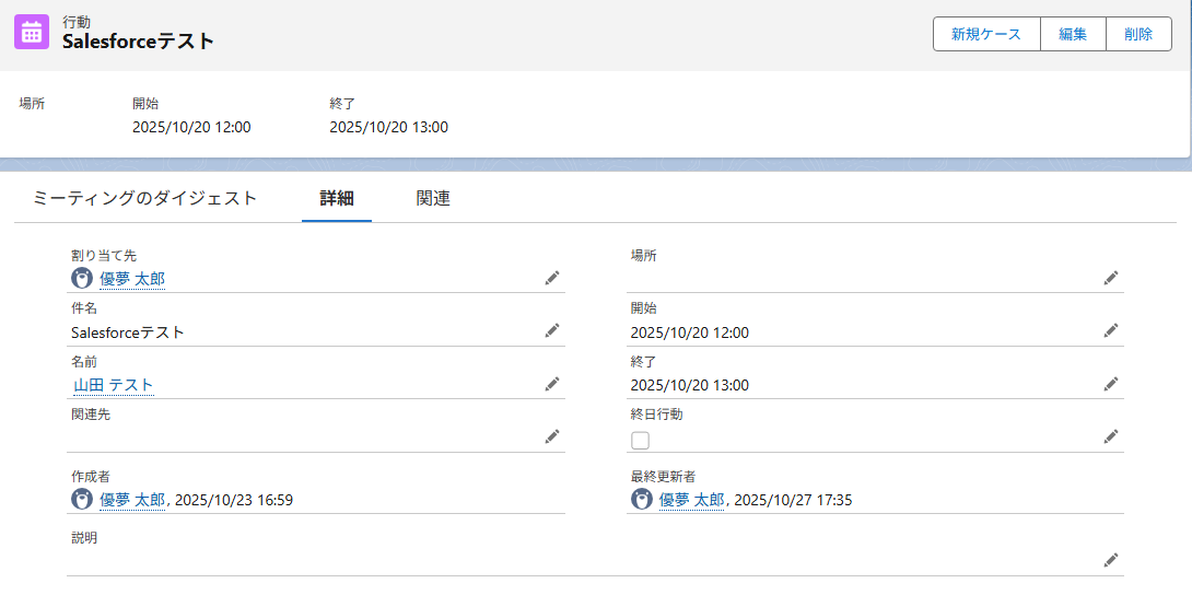 メモ欄に当日の記録を書き込んだので、この情報をSalesforceの行動オブジェクトへ追加するフローを実施したいと思います。