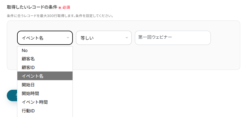 - 取得したいレコードの条件:以下のような形で、任意の条件を指定してください。