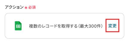- アクション:必要に応じて「変更」ボタンからアクションの内容の変更も可能です。