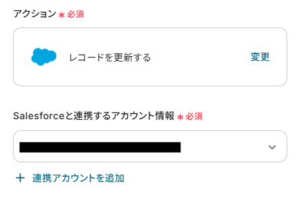 - アクション / Salesforceと連携するアカウント情報:デフォルトから変更不要です。