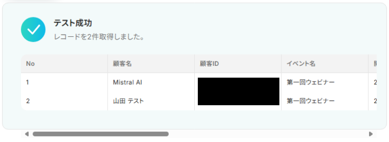 設定したらテストを行い、以下のような画面が表示されたら成功です。