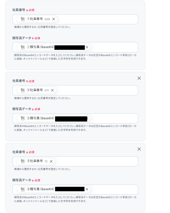 顔写真はBase64エンコード形式で入力してください。