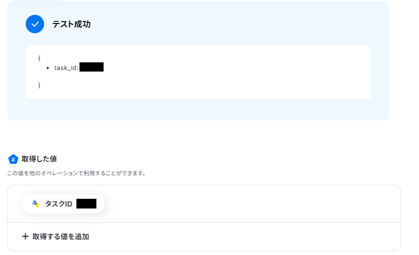 取得した値とは、トリガーやオペレーション設定時に、「テスト」を実行して取得した値のことを指します。