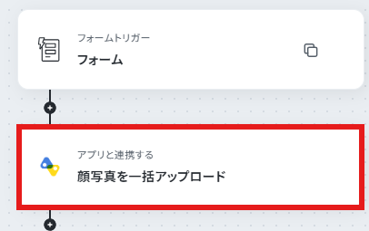 ②+マークからアプリと連携するオペレーションを選択し、カオナビを選択して以下の設定を行いテスト・保存してください。