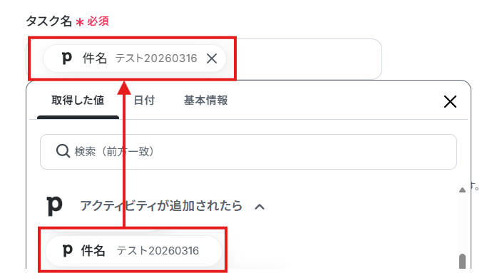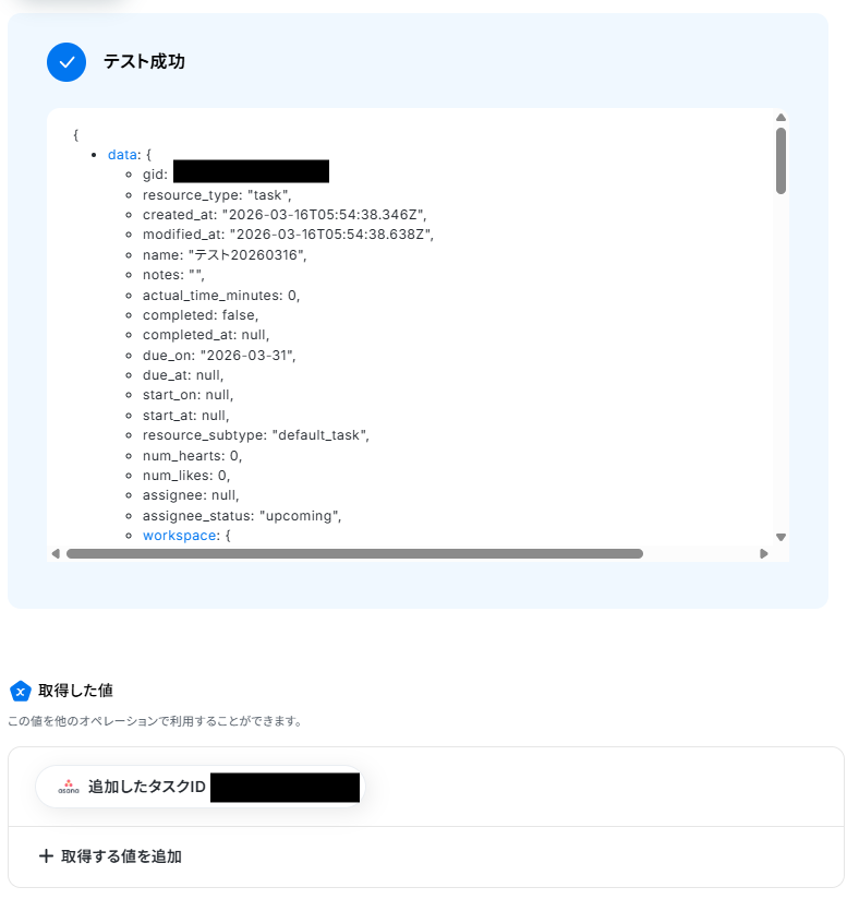 取得した値を活用することで、フローボットが起動するたび、変動した値が反映されたタスク名のタスクを作成可能です!