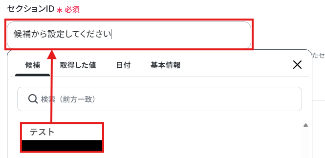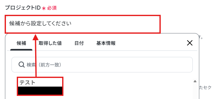 今回のフローでタスクを作成したいプロジェクトとセクションのIDを、それぞれ候補から選択しましょう。
