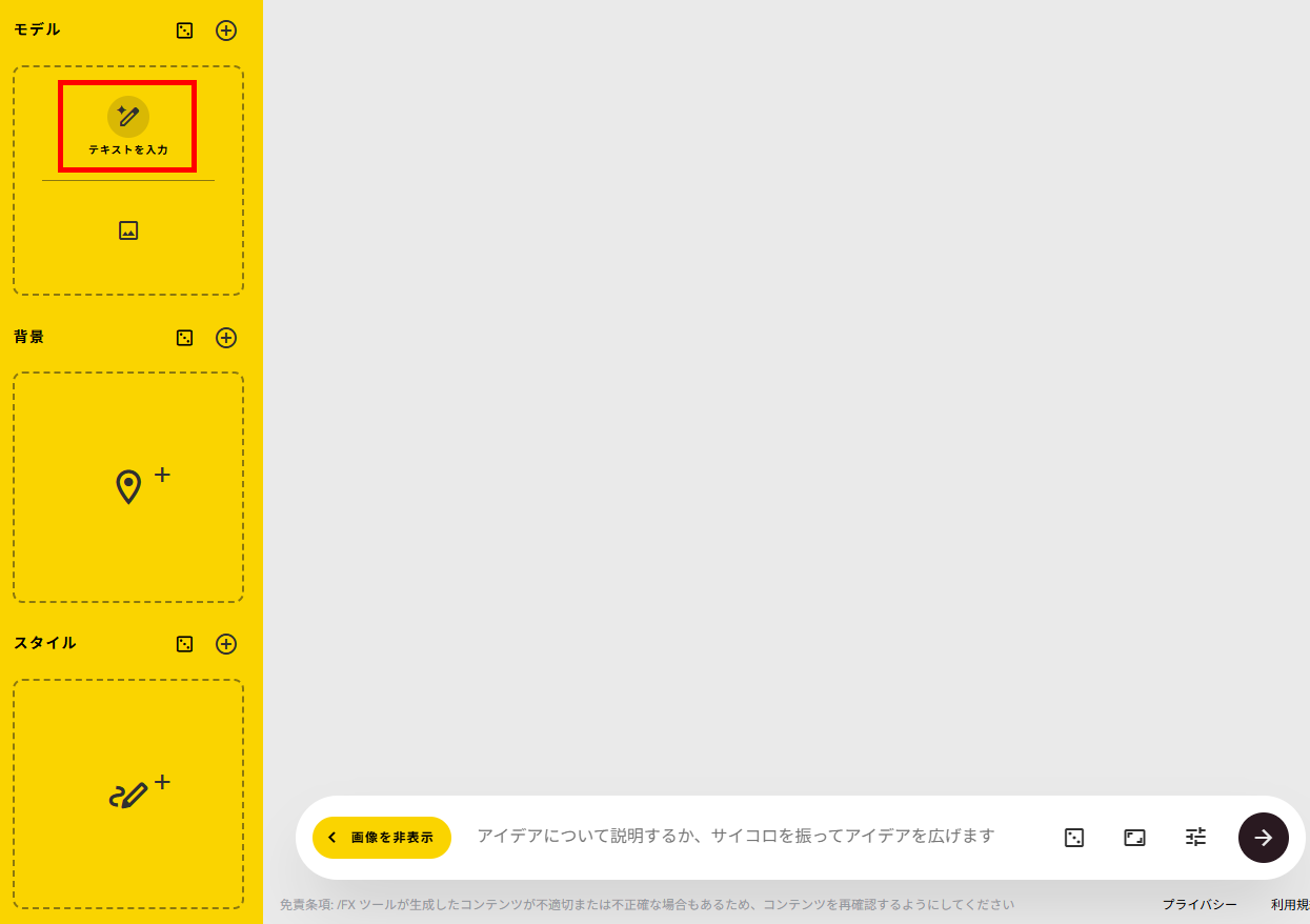 右側のメニューでモデルや生成条件を設定し、プロンプトを入力します。 今回は、以下のプロンプトで画像を生成しました。【プロンプト】