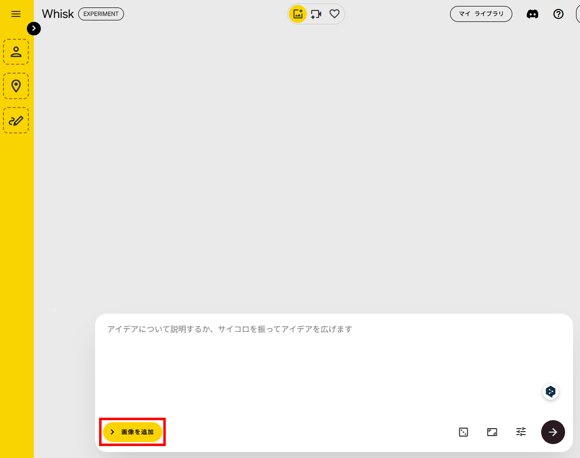 手順 Whiskにログインし、「画像を追加」を選択します。