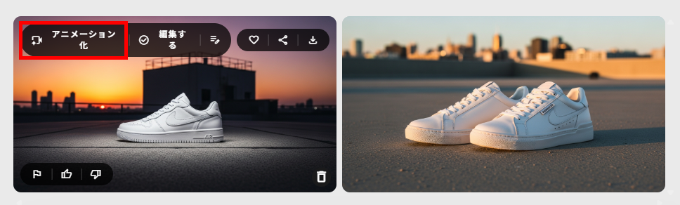 これらの画像から、イメージ動画も作成できます。 画像にカーソルを合わせて「アニメーション化」をクリックします。