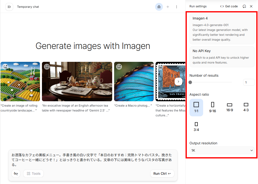 Google AI StudioでImagenを使ってみてわかったことは、以下になります。