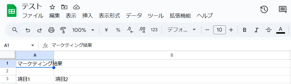 2.ここでは、連携するGoogle スプレッドシートの設定を行います。 まだGoogle スプレッドシートの準備が整っていない場合は、このタイミングで作成しておきましょう。 今回は、下記のようなGoogle スプレッドシートを用意したので、こちらにデータを追加したいと思います。