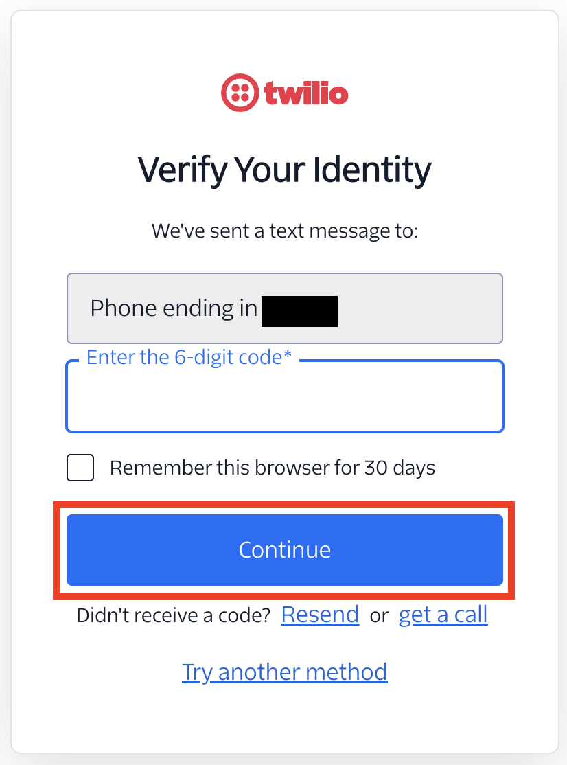 電話番号認証が求められるので、SMSに届いた6桁のコードを入力し、「Continue」をクリックします。