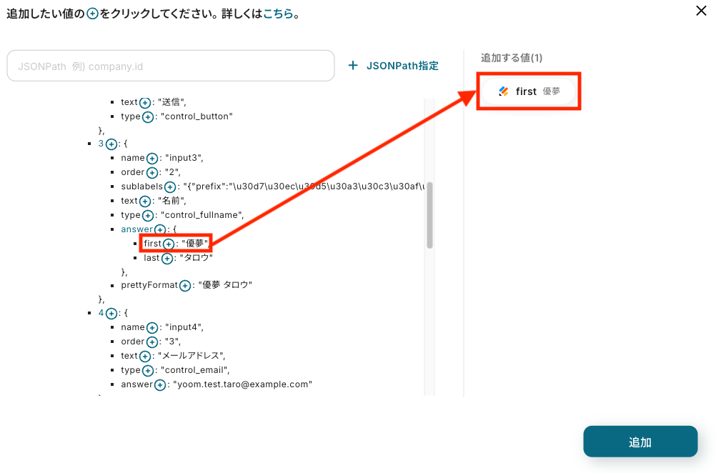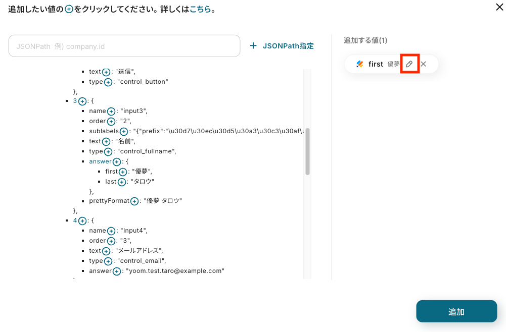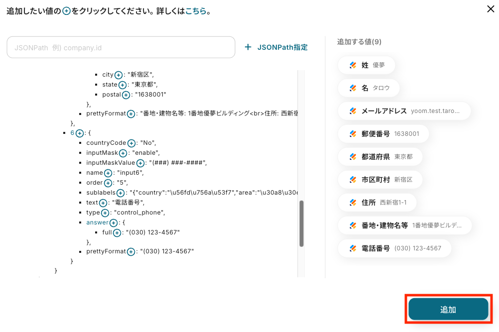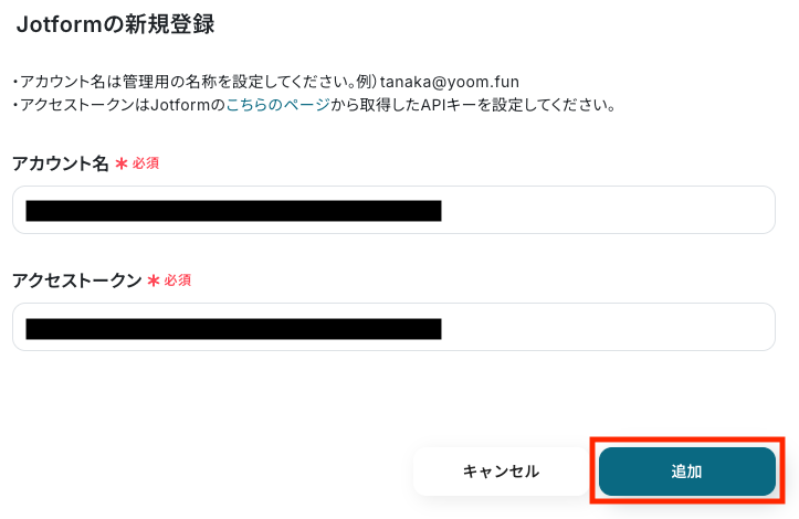 「追加」をクリックしたら、Jotformの連携は完了です!