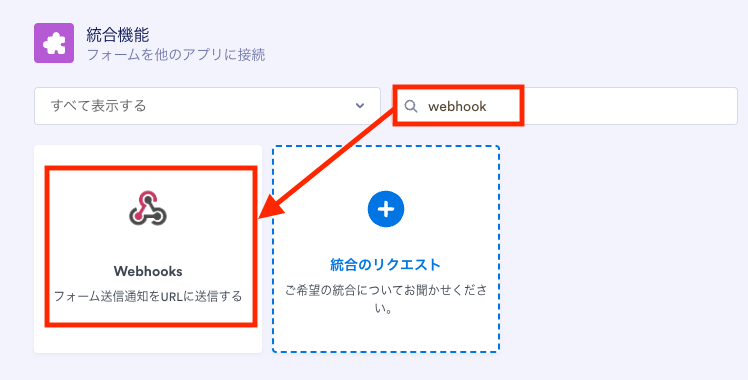 検索窓に「Webhook」と入力し、表示された「Webhooks」をクリックします。