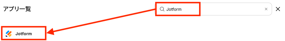 検索窓に「Jotform」と入力し、表示された対象のアプリを選択します。