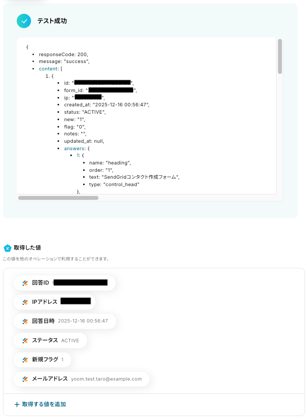 Yoomには、フォームの回答をSendGridのコンタクトリストに自動で連携するテンプレートが用意されています。