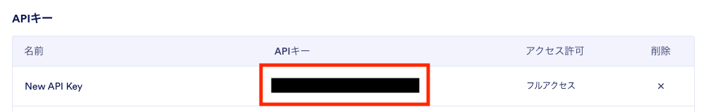 設定が完了したら、生成されたAPIキーをコピーしてください。