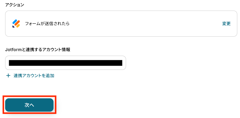 まずは、連携するアカウントとアクションを設定します。