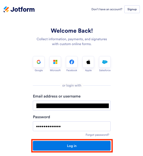 まず、Jotformにログインしてください。