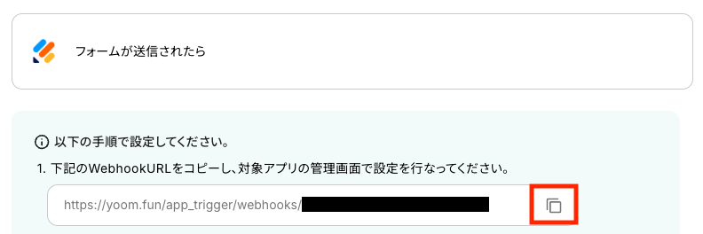 まず、Yoomの設定画面に表示されているWebhookURLをコピーしてください。