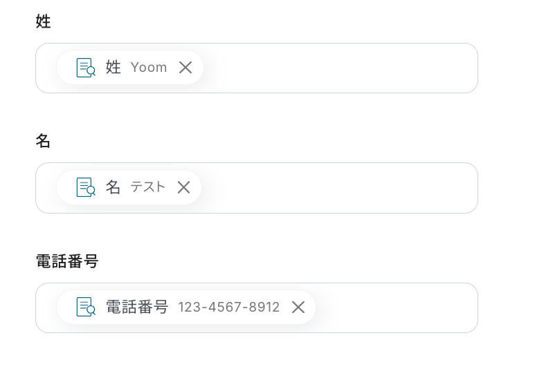 姓名や電話番号なども、同様に取得した値から任意で設定していきましょう!