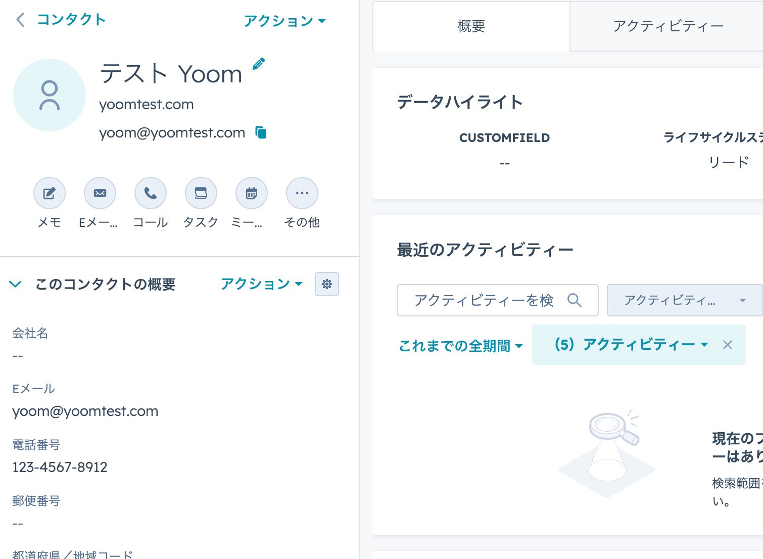 テスト成功で、HubSpotに新しいコンタクトが作成されています!