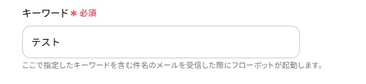 「キーワード」を入力すると、指定したキーワードを含んだメールのみに反応します。今回は「テスト」と入力しました。