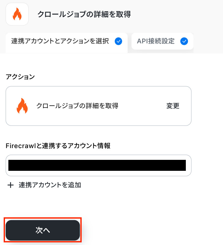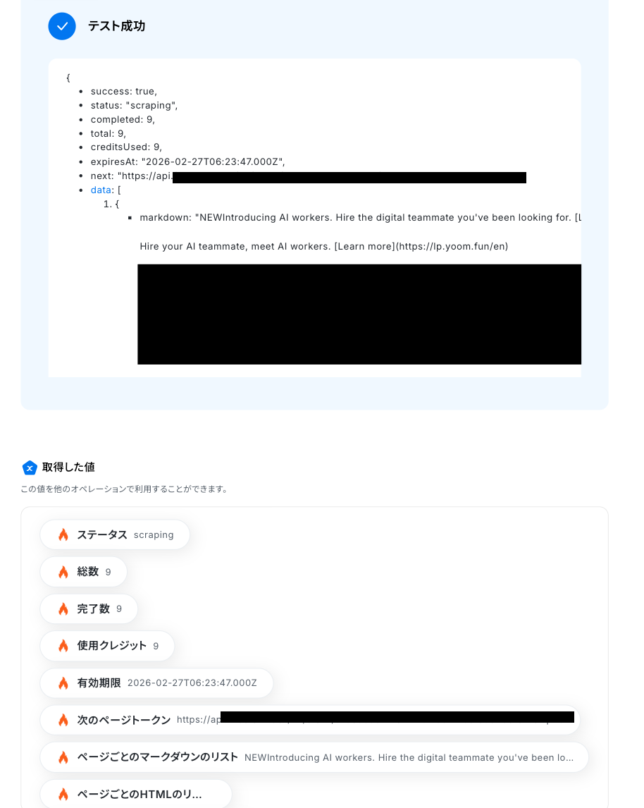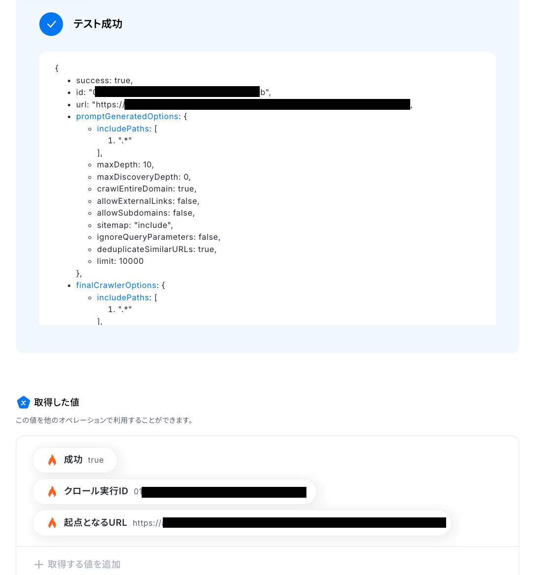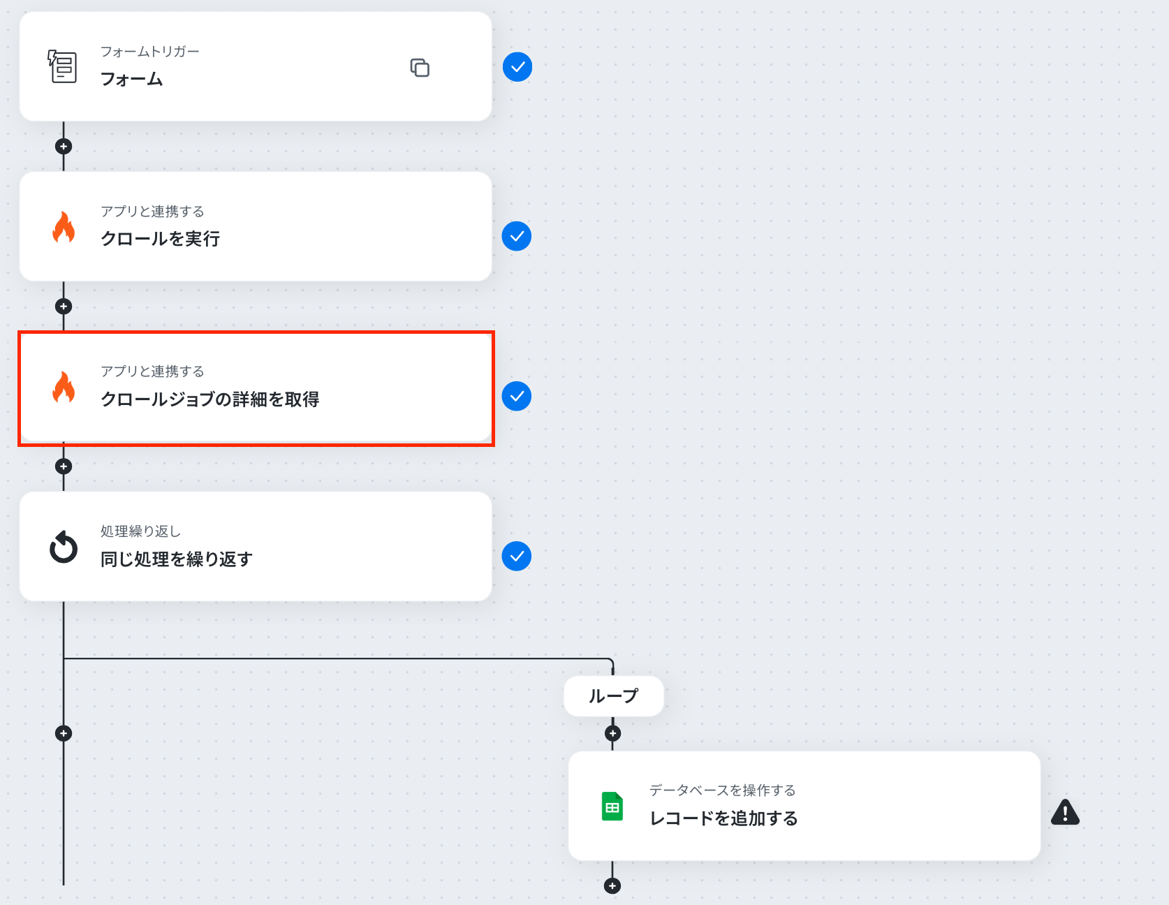 ここでは、Firecrawlのクロールジョブの詳細を取得する設定を行います。