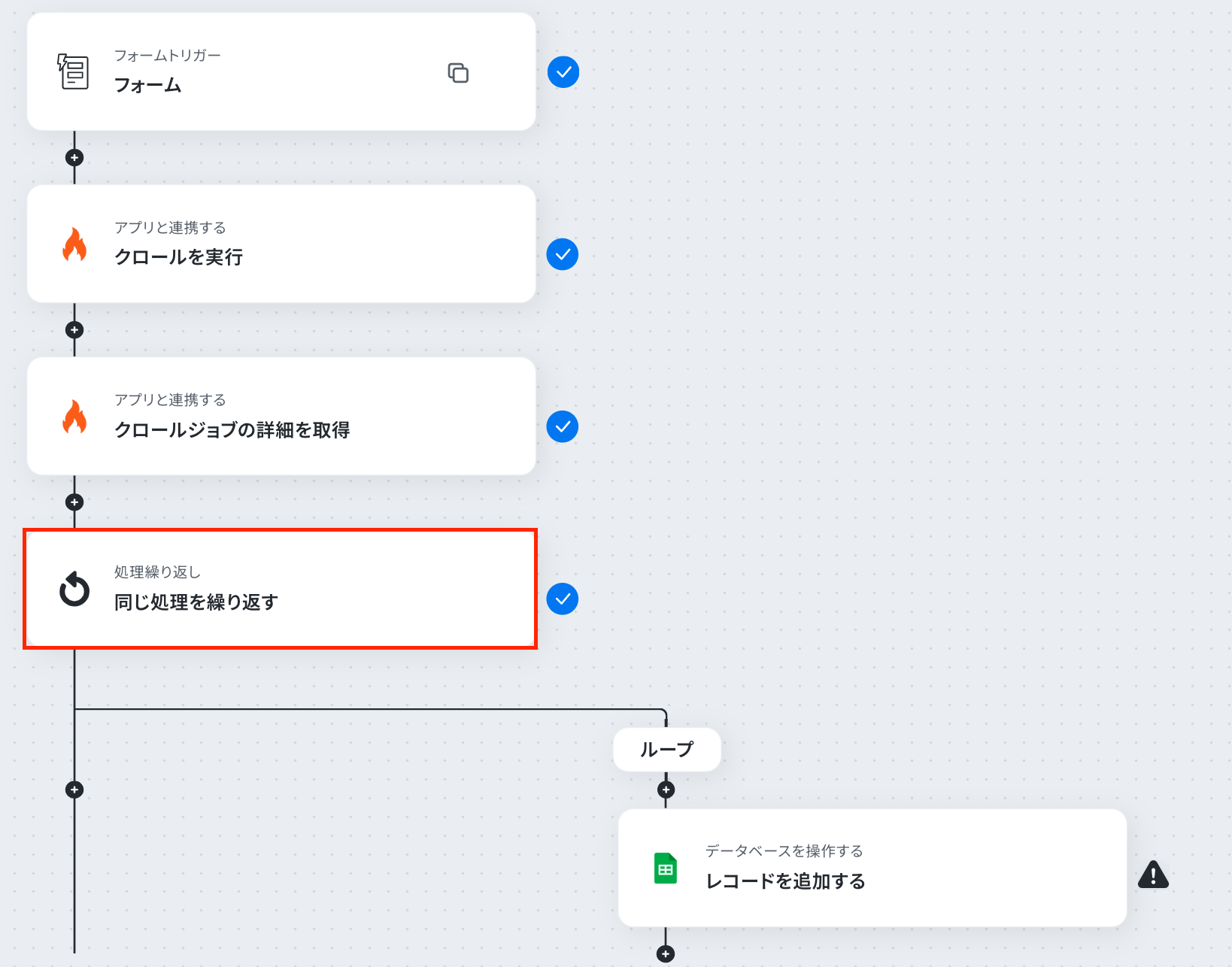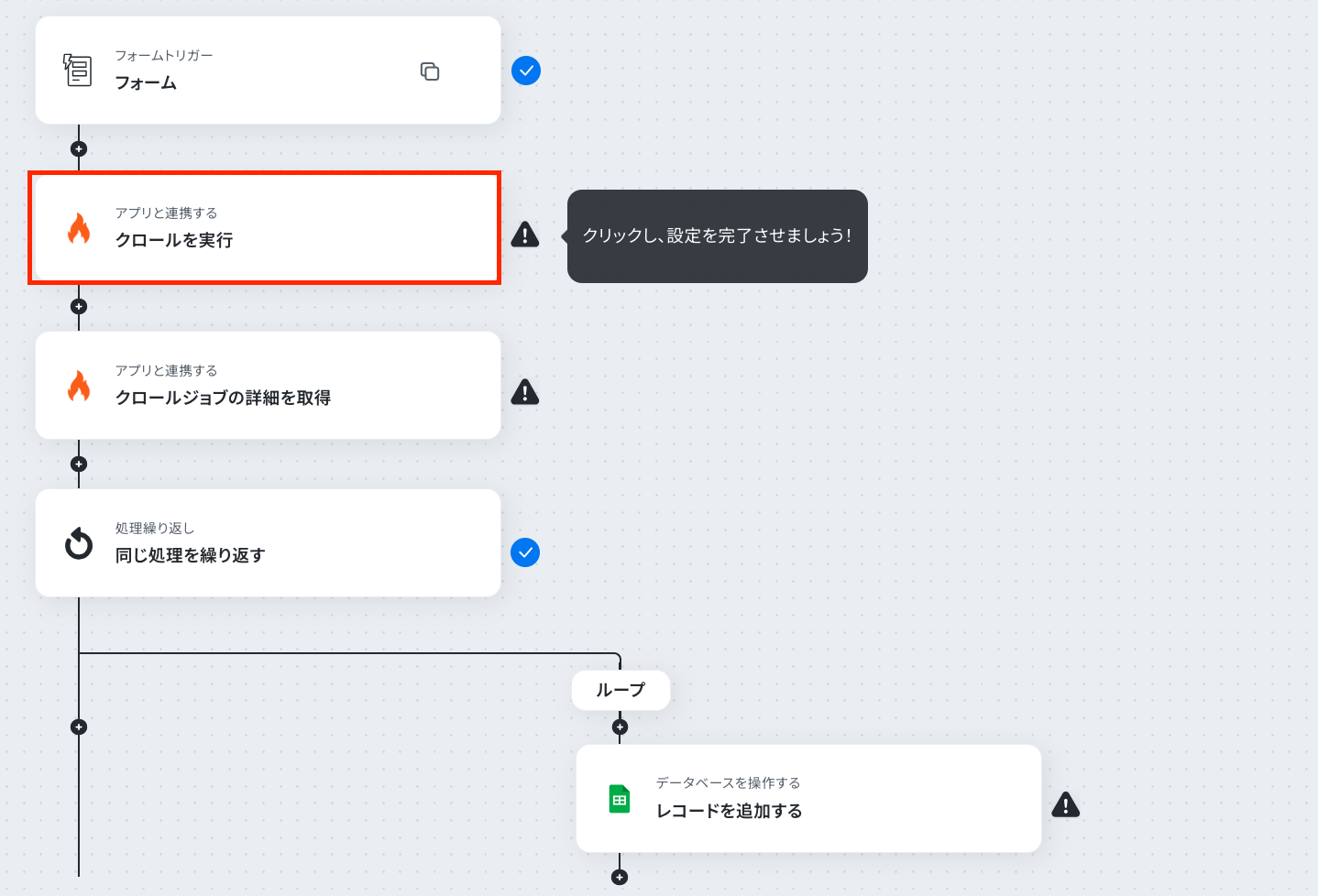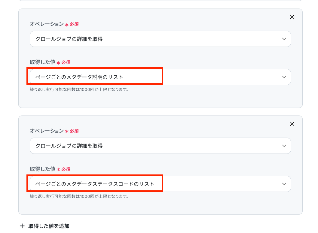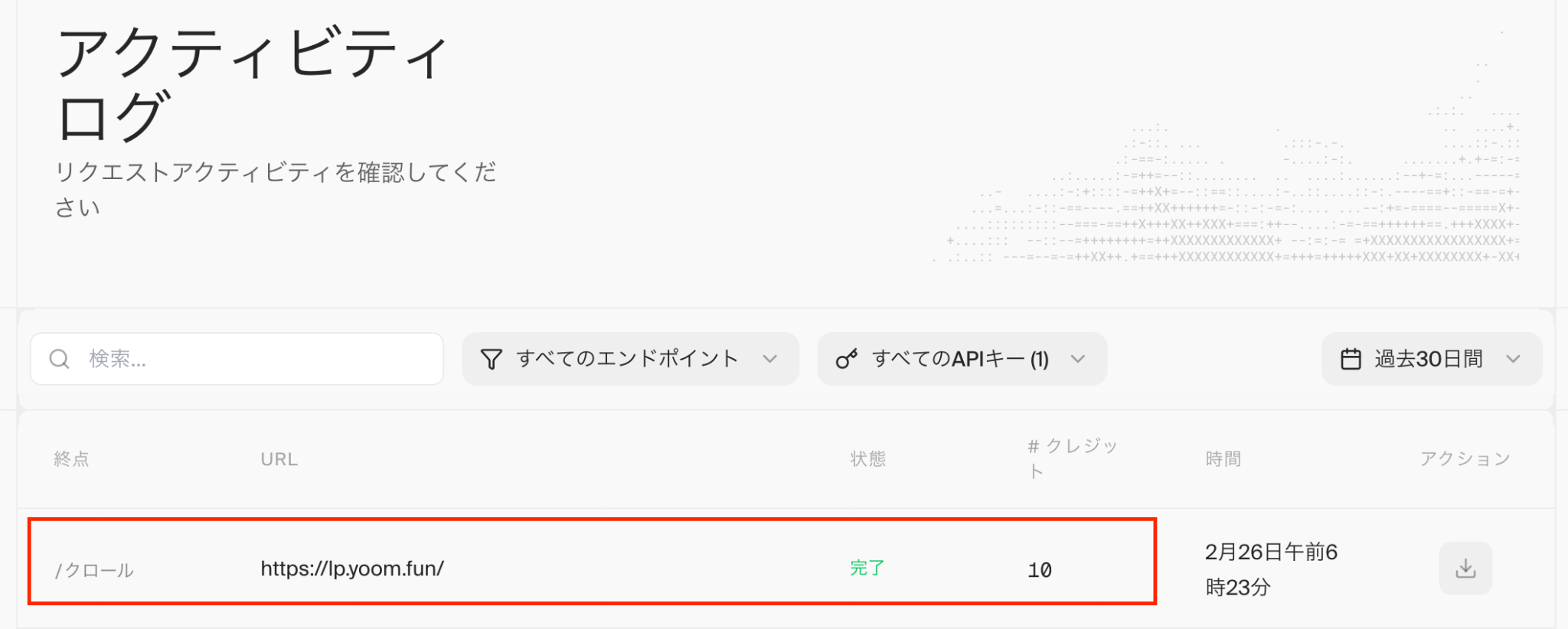 ここでは、Firecrawlのクロールジョブの詳細を取得する設定を行います。