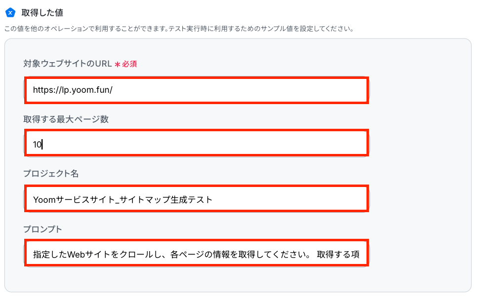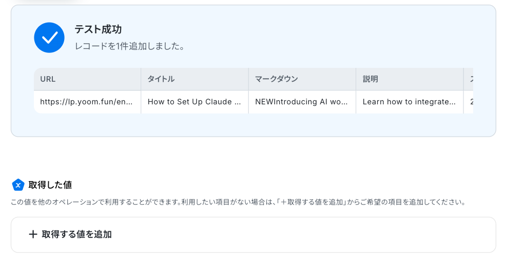 ※テストを実行しても成功しない場合は、FirecrawlのURLなど任意のURLを入力してください。