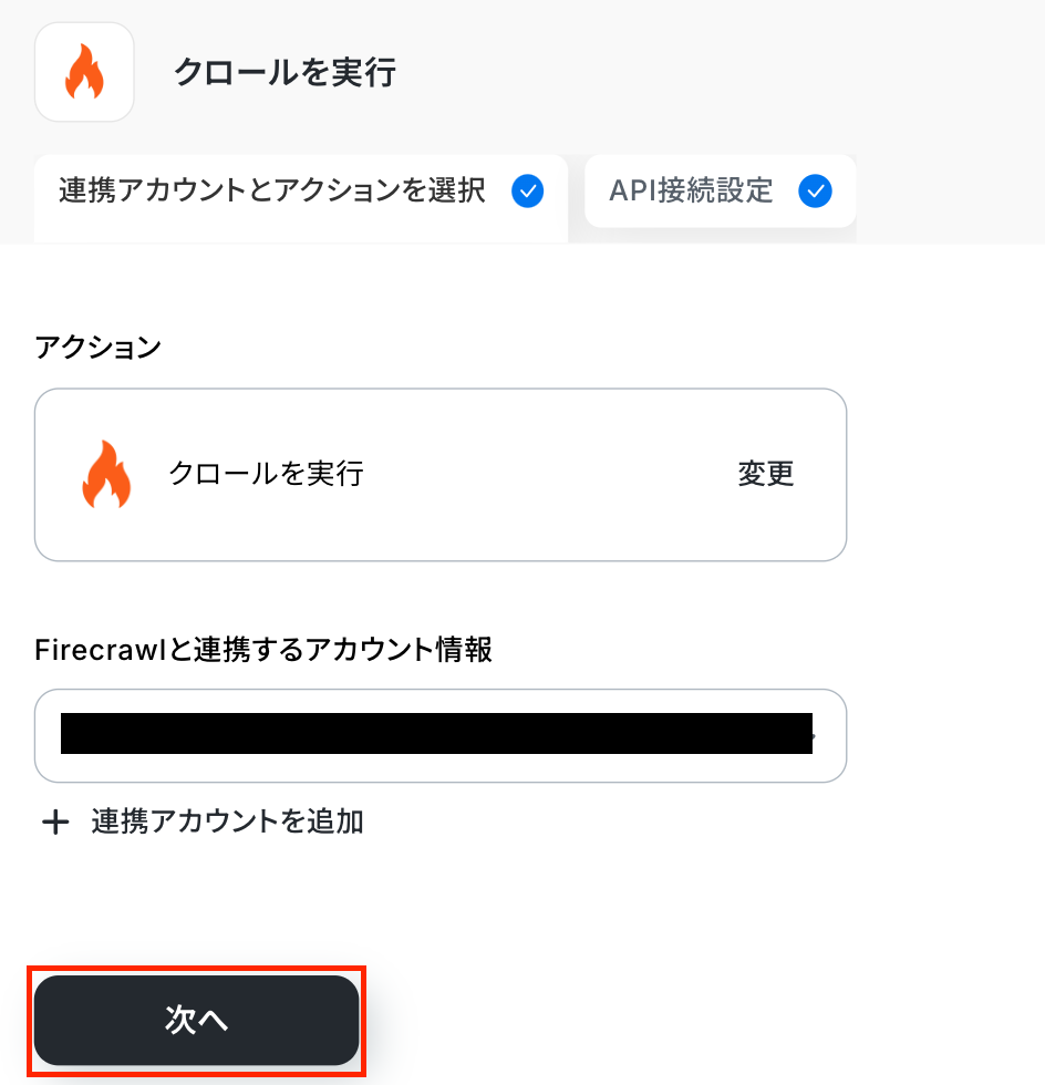 ここでは、Firecrawlでクロールを実行する設定を行います。