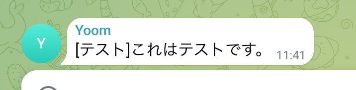 Yoomの設定に戻って「テスト」ボタンを押します。