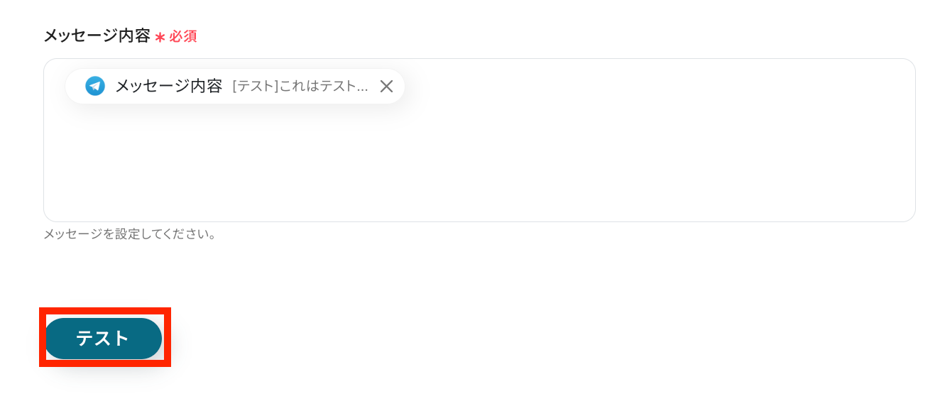 メッセージ内容の設定が終了したら、テストを実行して下さい。