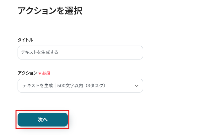 今回は企画案を作成するフローなので「企画案を作成してください」と入力しています。