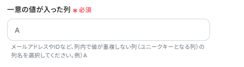一意の値が入った列を入力してください。入力欄の下部を一読して、入力してみましょう。