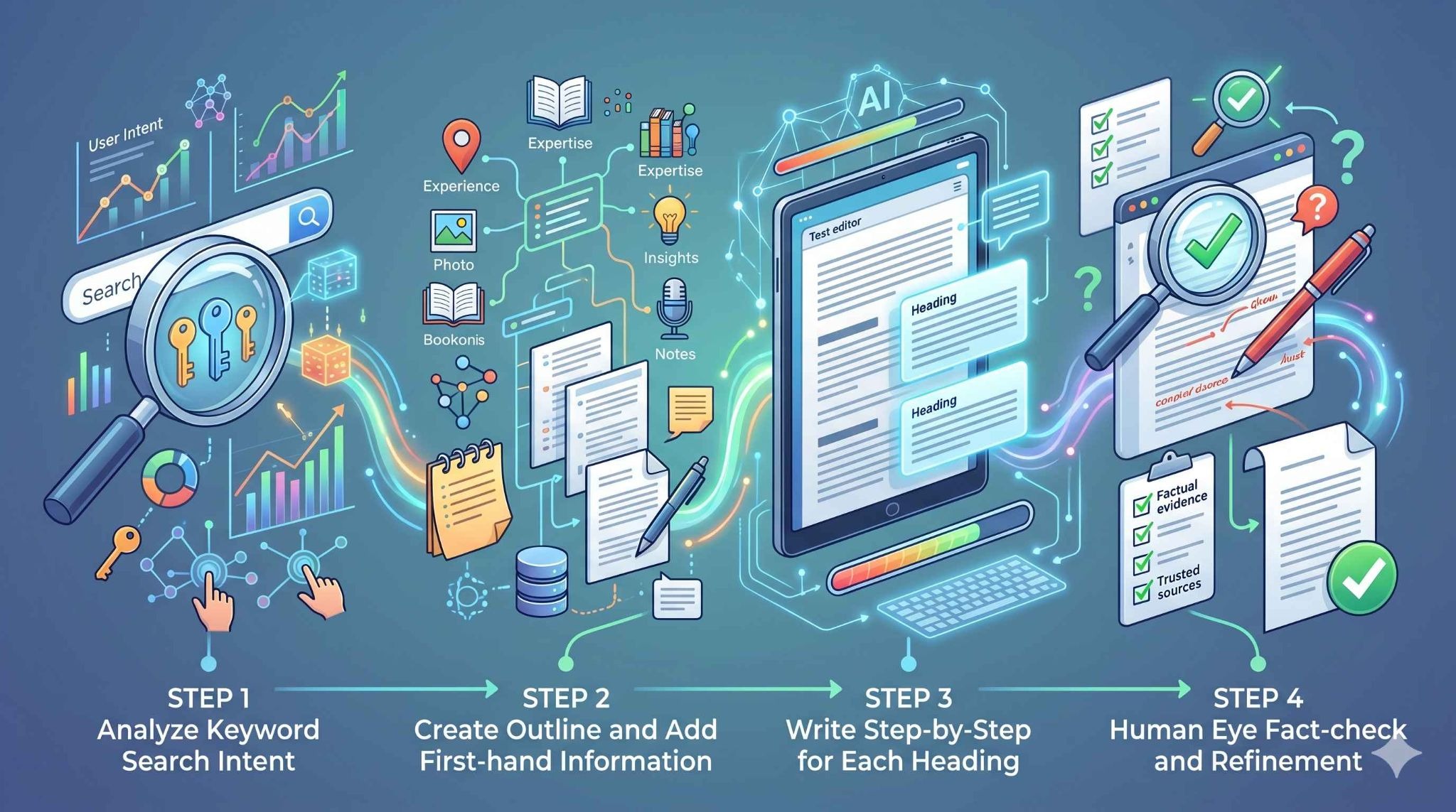 AIを使った記事作成を成功させる秘訣は、執筆スタイルや記事のジャンルにあわせて、これらを使い分けることにあります。