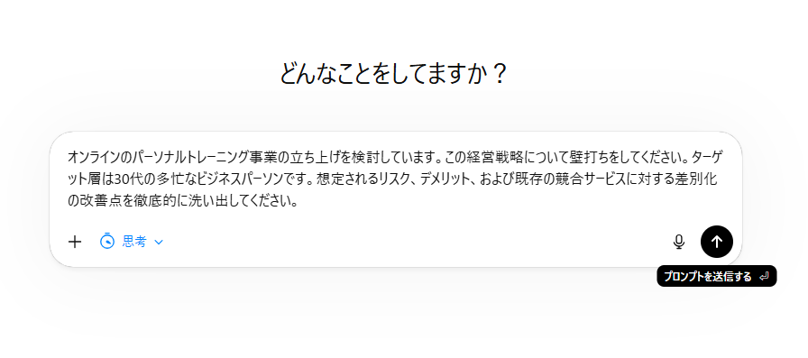 - 多角的なフィードバック: 戦略に対するリスクやデメリットを、客観的かつ冷静な視点から指摘。