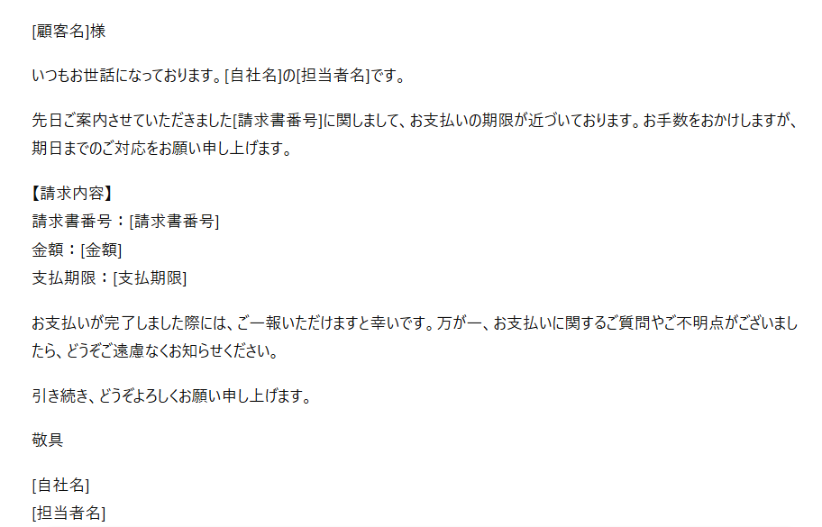 テンプレートを一言一句そのまま出すように指示しましたが、一部のパターンではAIによる独自の解釈が強く働いてしまう結果となりました。 具体的には、「リマインドメール」のボタンを押した際、テンプレートにはない「お支払いのリマインドについて」という件名の請求督促メールが出力されてしまうなどAIの独自の解釈が入ってしまいます。