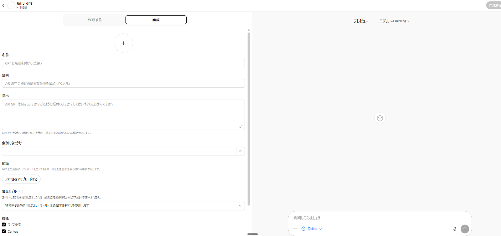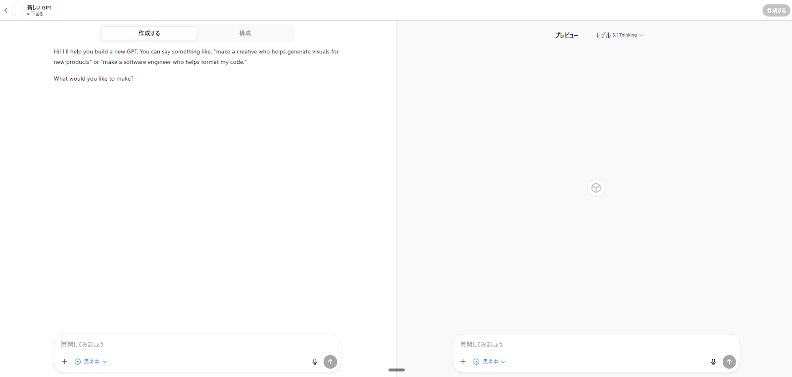 【会話しながらGPTsを作る画面】