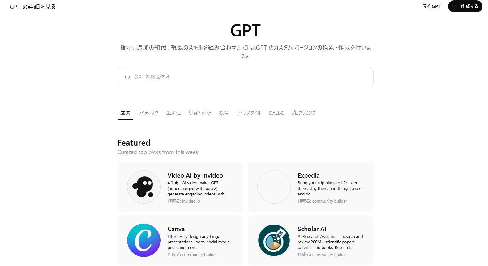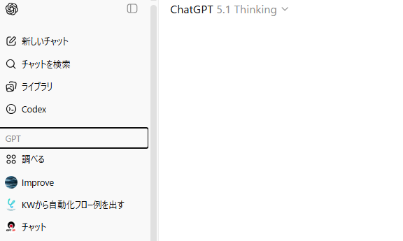 1.ChatGPTにログインし、左カラムにある「GPT」欄から「調べる」を選択します。