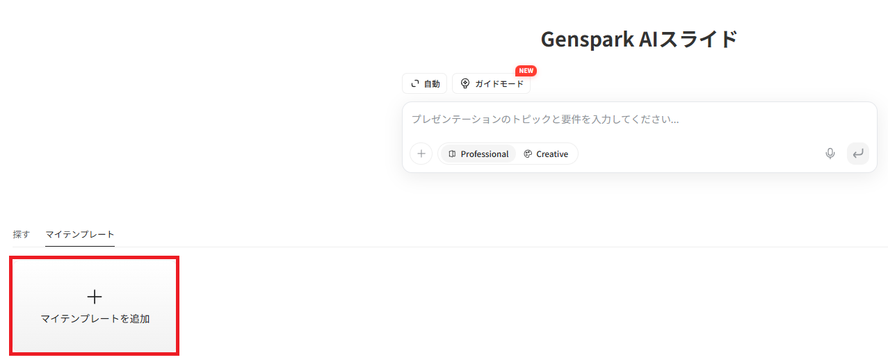 ここからは、Gensparkを使って実際にスライドを作成するまでの具体的な手順を解説します。