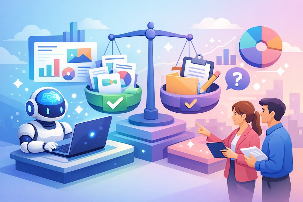 Gensparkをスライド作成に導入することで得られるメリットは多岐にわたりますが、ビジネスの実務において特に恩恵が大きいのは「圧倒的な時短効果」「自社ブランドの維持」「情報の信頼性確保」の3点です。