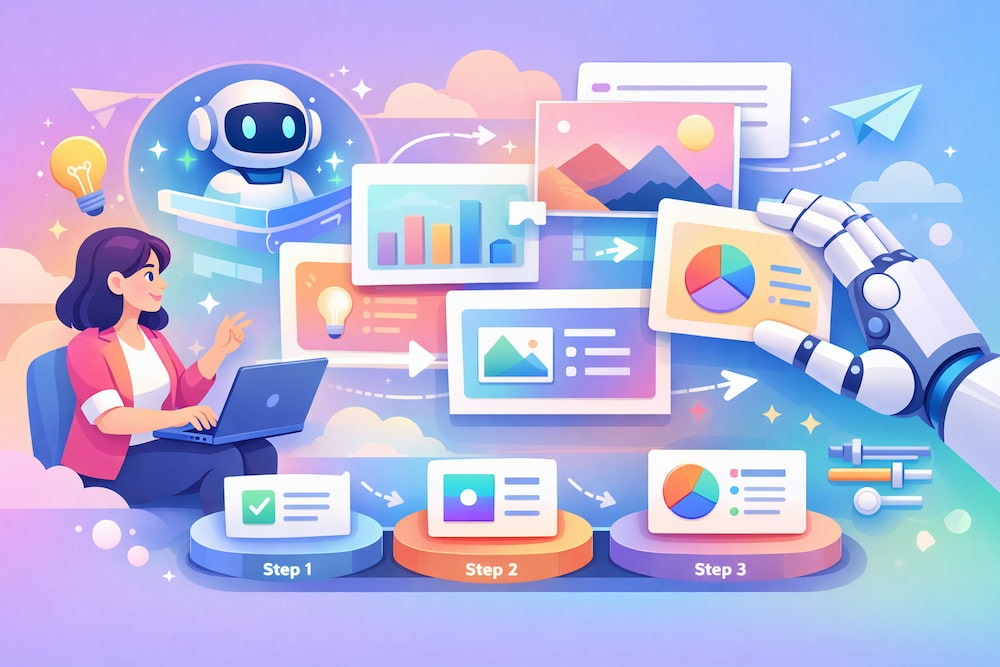 その中でも、ビジネスパーソンから特に熱い視線を集めているのが「AIスライド」と呼ばれるスライド生成機能です。この機能は、ユーザーがテキストでトピックを入力するだけで、情報の収集から構成案の作成、デザインの適用、そして画像やグラフの挿入までを一気通貫で行ってくれる画期的なツールです。