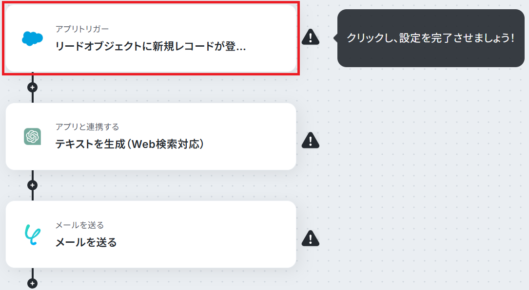 それではここから代表的な例として、Salesforceでリードが登録されたら、リード調査レポートを作成し担当者へメール送信するフローを解説していきます!