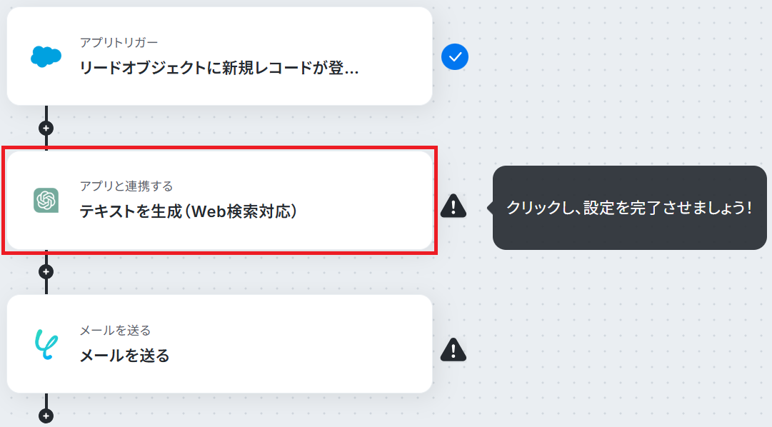 Salesforceに新しいリードが登録されるたびに、手動で情報を調査し、レポートを作成して担当者に共有する作業は手間がかかるものです。 また、これらの定型業務に時間を取られ、本来注力すべきコア業務に集中できないという課題も少なくありません。 このワークフローを活用すれば、Salesforceへのリード登録を起点として、ChatGPTによるリード調査レポートの作成から担当者へのメール送信までを自動化し、これらの課題を円滑に削減します。