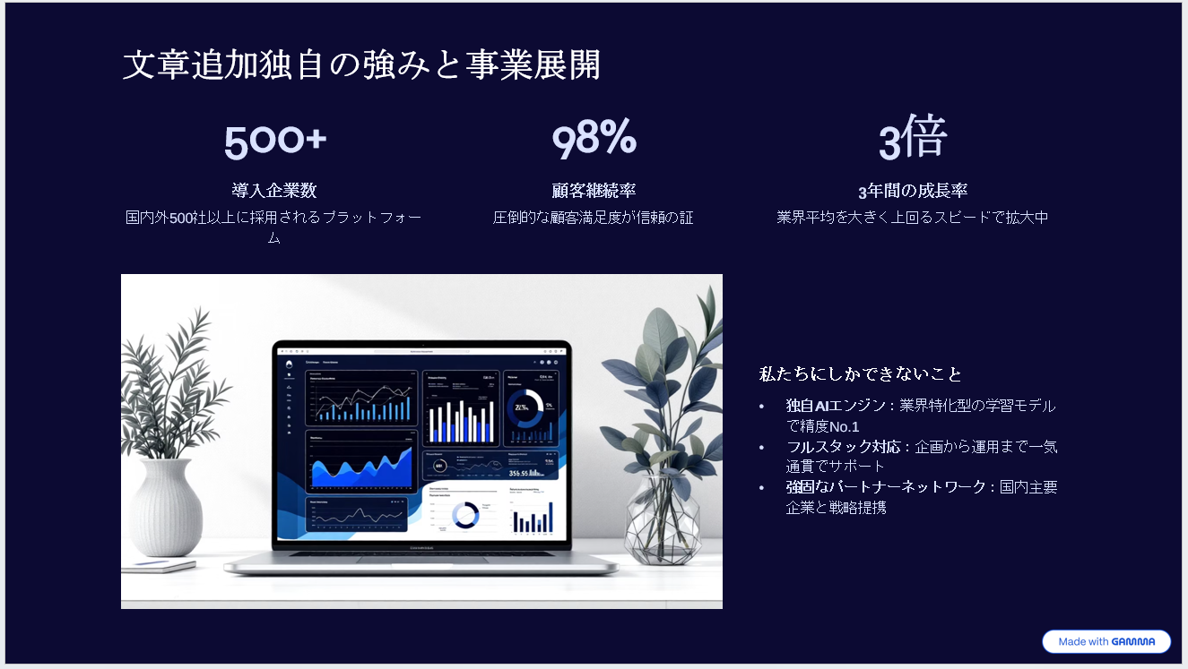 GeminiとGammaを組み合わせた手法は、効果的であると感じました。