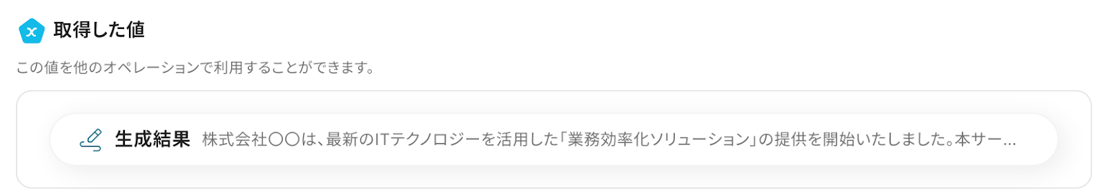 ※以下の画像のように、任意で作成した文章と先ほど取得した値を組み合わせて自由に設定してください。